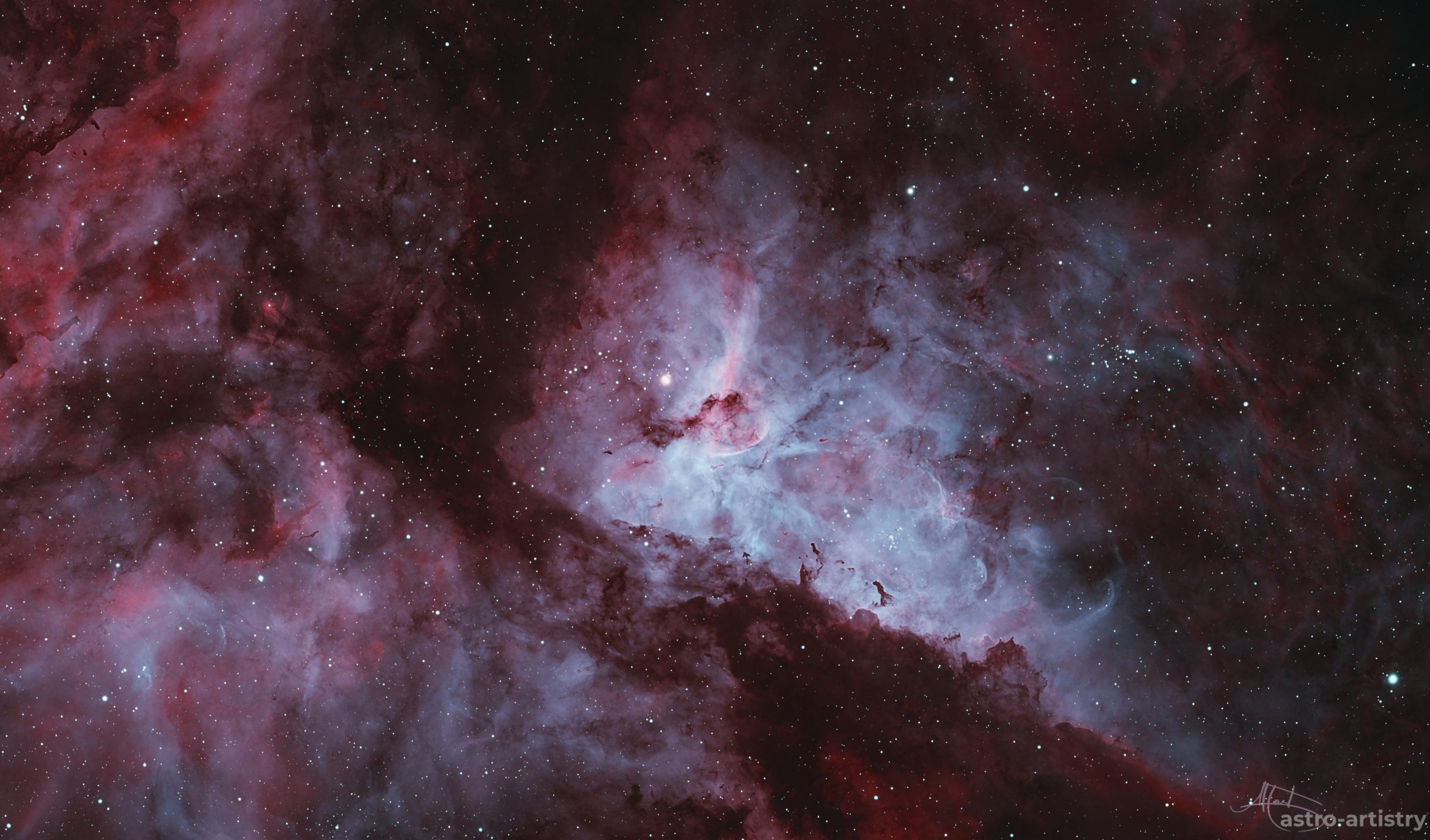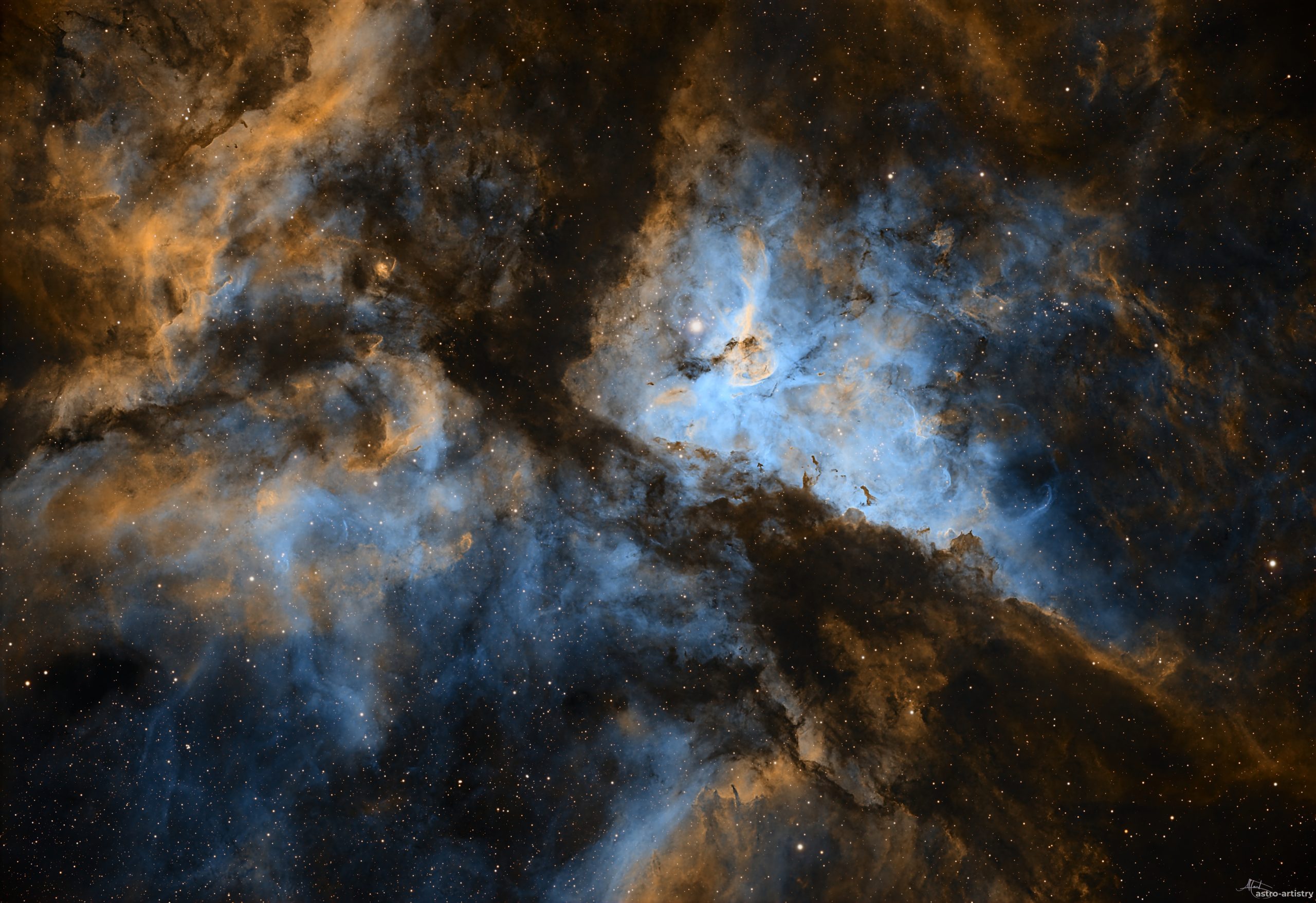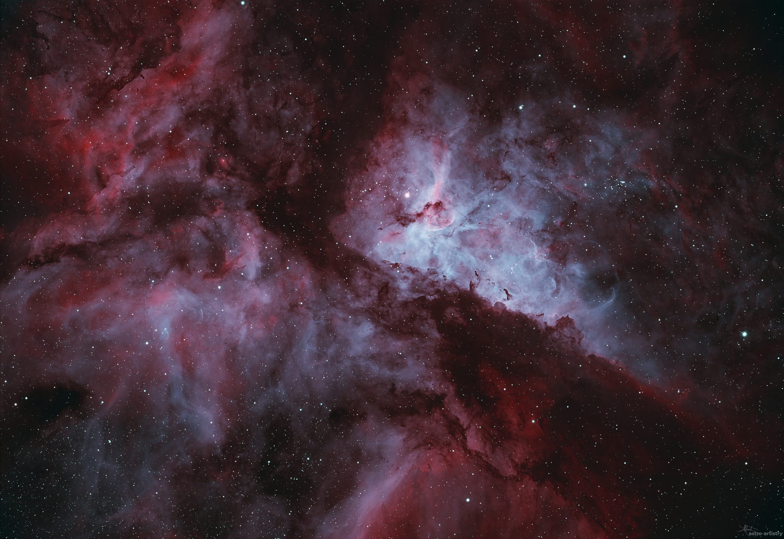 NGC 3372 ETA Carina - SHO - Captured on the PlayerOne Poseidon-M , 130FF , f7/7, ZWO 7nm Narrow band filters- Hydrogen Alpha and Oxygen III and Sulphur II. This image was captured on 27 May 2025