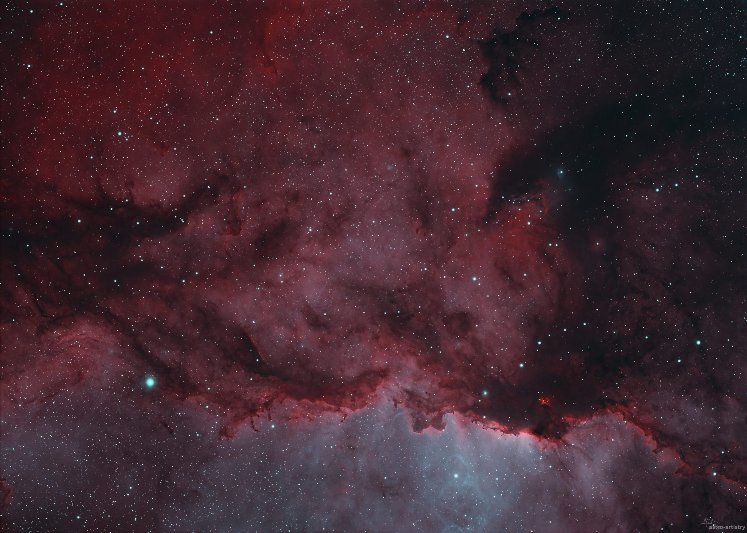 NGC 6881 - Dragons of Ara - SHO - Starless - Captured on the PlayerOne Poseidon-M , 130FF , f7/7, ZWO 7nm Narrow band filters- Hydrogen Alpha and Oxygen III and Sulphur II. This image was captured on 31 May 2025